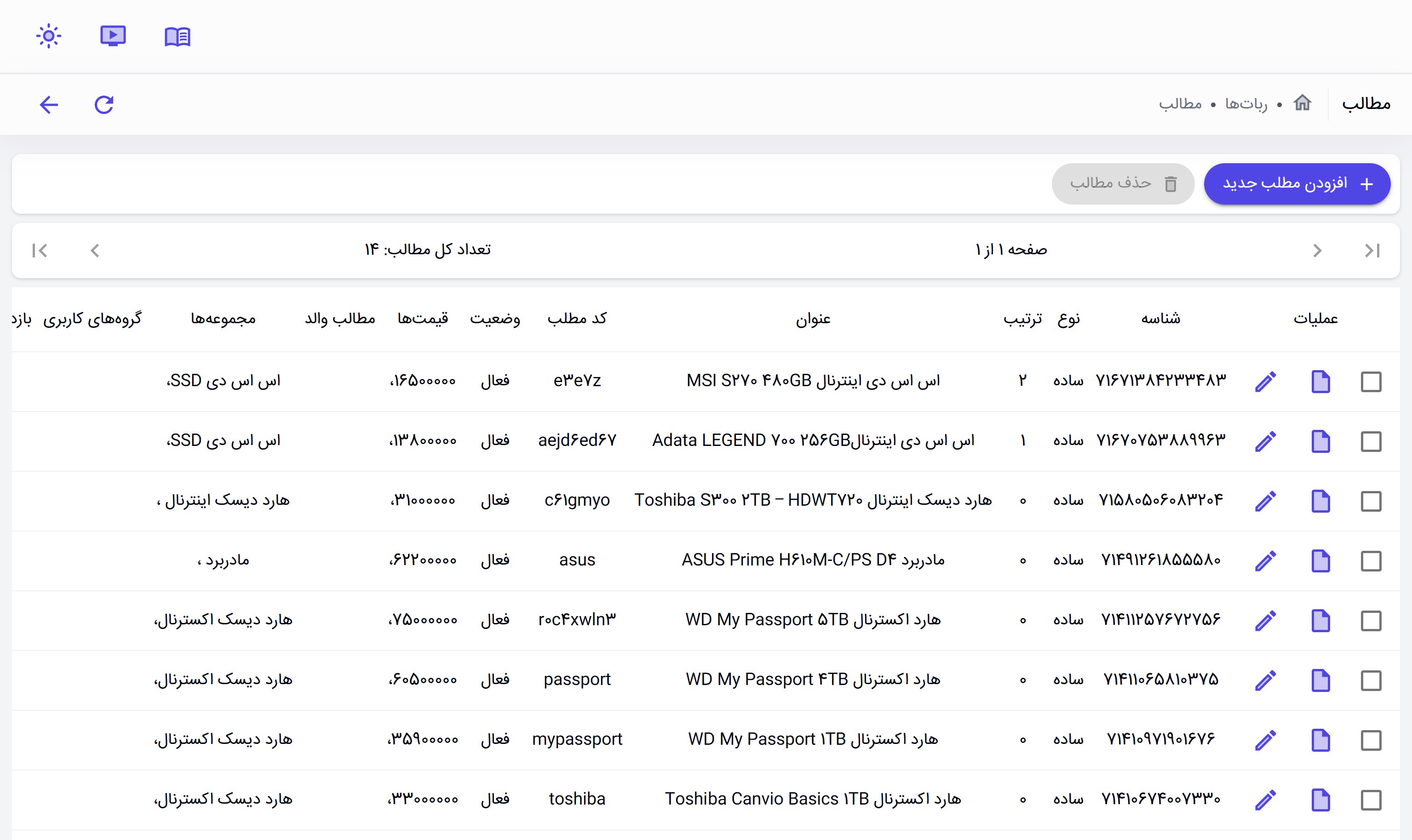 در این قسمت میتوانید اطلاعات ثبت شده ربات مورد نظر را ویرایش یا تکمیل کنید.